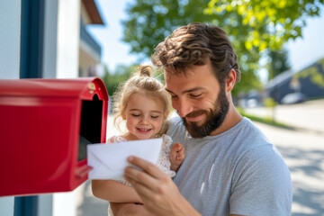 YOUNG WOMAN LOOKING FOR POSTAL MAIL AT HER MAILBOX.
