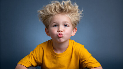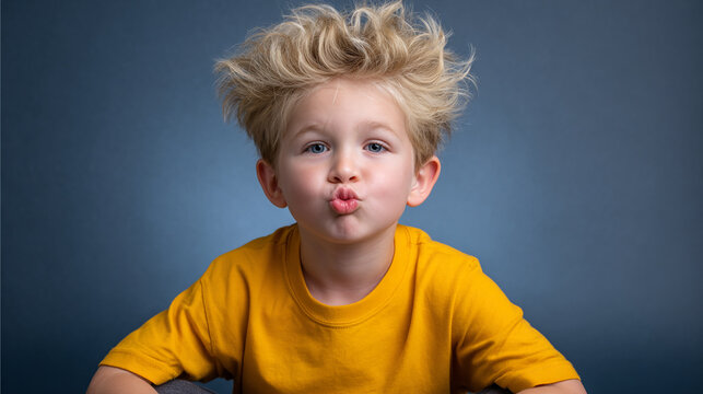 Fiery redhead young boy pulling a face, fingers in his mouth tongue sticking out