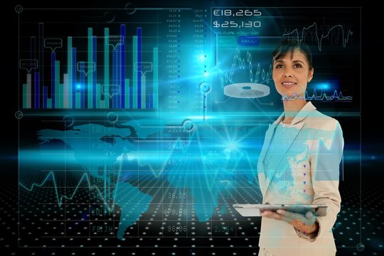 A smiling young woman virtually selects completed tasks on a digital checklist interface now displayed.