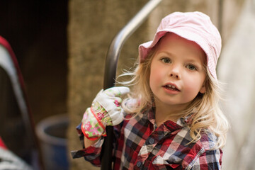portrait of redhead bigender person with facial piercing laughing with closed eyes on grey backdrop