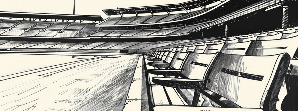A baseball stadium grandstand with empty seats. View from the stadium stand. Sketch illustration