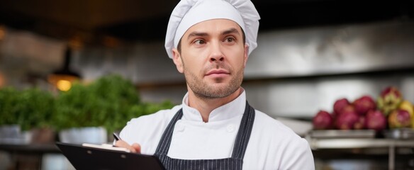Chef Checking Culinary Orders In Busy Kitchen Environment Images
