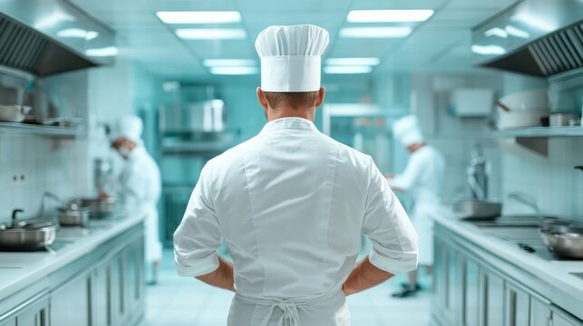Professional chef preparing dish in modern kitchen environment