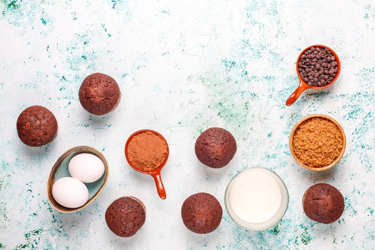 Country baking ingredients with rustic brown eggs and fresh wheat