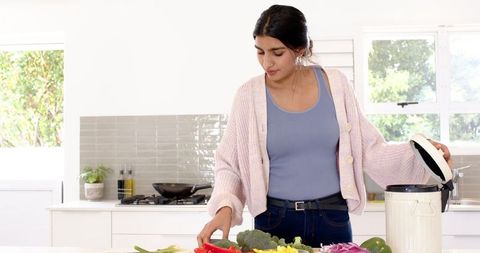 Eco-friendly composting in modern kitchen with fresh vegetables