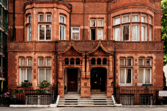 Victorian red brick townhouse facade in london