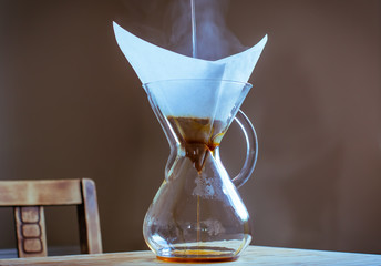 Freshly Brewed Coffee in Glass Chemex Pour Over Brewer