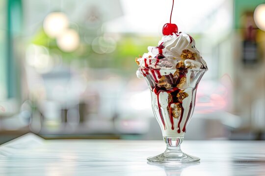 Cherry Topped Strawberry Sundae in Retro Diner