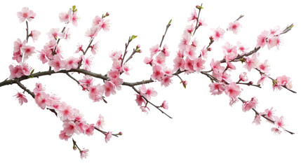 Pink Cherry Blossoms in Spring Isolated on a transparent background.