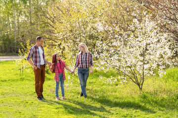 Blooming cherry blossoms in spring garden