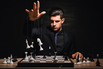 Businessman playing chess game Planning of leading strategy successful business leader concept