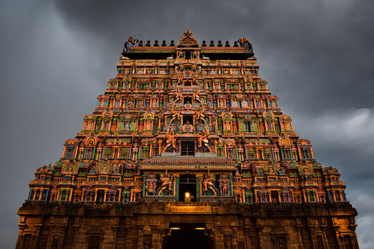 Temple tower of Thillai Nataraja Temple, also referred as the Chidambaram Nataraja Temple, is a Hindu temple dedicated to Nataraja, the form of Shiva as the lord of dance