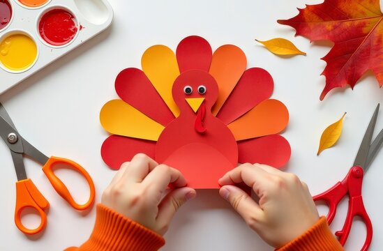 Children Engaging in Autumn Themed Crafts with Colorful Paper Leaves
