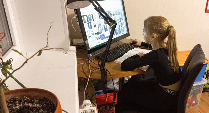 Young girl learning online at home during quarantine