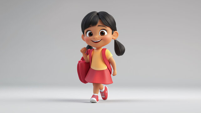 3d cartoon girl walking to school | 3d girl character | Girl going to school in cartoon style