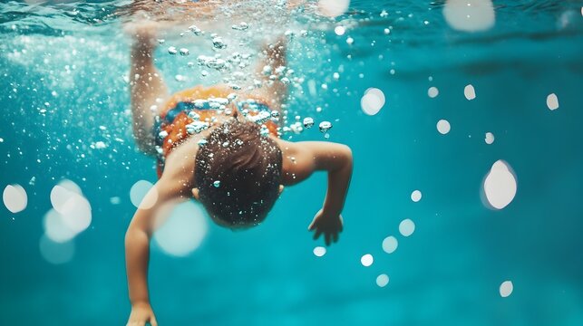 Carefree Child Diving Joyfully into Sparkling Swimming Pool