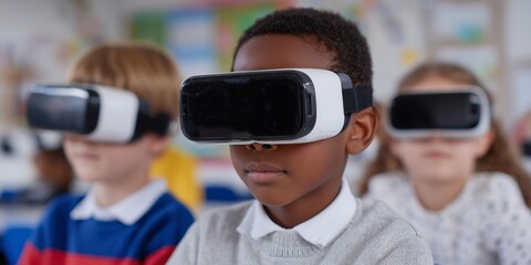 Children Using Vr Headsets For Interactive Classroom Learning Images