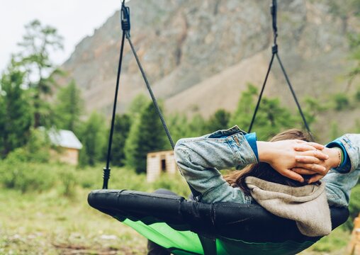 Women chilling on swing