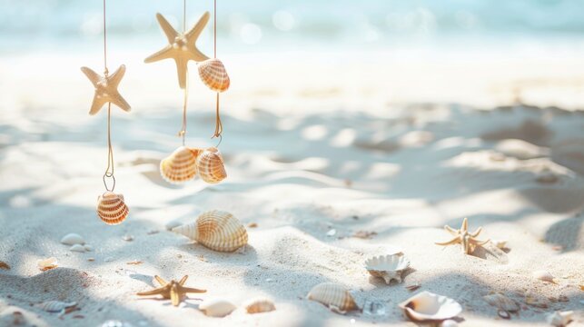 Wall decor made of shells. Handmade wind chimes of seashells. Bali, Indonesia
