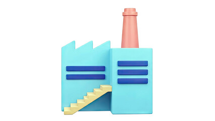 Minimalist 3D Factory Building with Chimney and Stairs