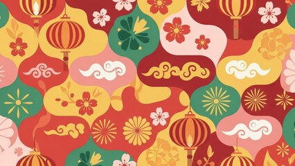 Chinese new year celebration with festive lanterns and patterns