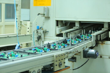 machine making motherboard close up. electronic system manufacturing. computer mother board chip hardware. production process of electronic hardware. circuit board close up circuit board manufacturing