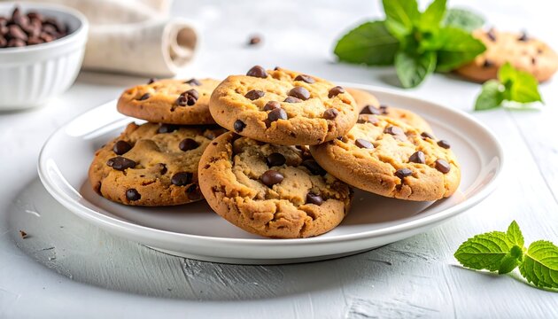 chocolate chip cookies floating/falling isolated on a white background transparent png