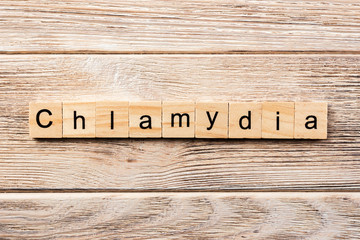 Chlamydia - word from wooden blocks with letters, parasitic bacterium chlamydia concept, grey background