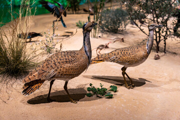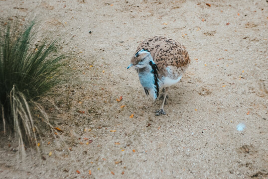 Paris, France - 04 06 2024: The menagerie, the zoo of the plant garden. View of a Asian houbara bustard bird.