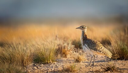 Asian houbara Bustard  Camouflaged in a Golden Savanna.