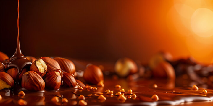 Close-up of smooth melting chocolate on brown surface
