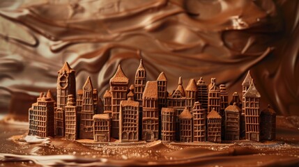 Chocolate town with skyscrapers. Sweet urbanism. Houses and buildings made from chocolate