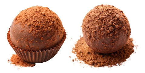 Chocolate truffle, with cocoa powder dusting isolated on transparent background.
