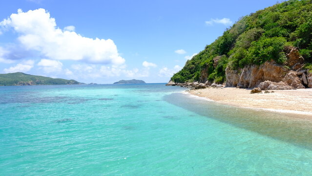 Beautiful tropical beach with white sand and clear water at Kho Kham Island, Chonburi Province, Thailand.