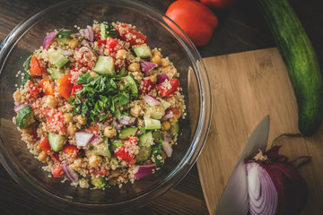 Colorful fresh vegetable salad with cherry tomatoes and bell peppers