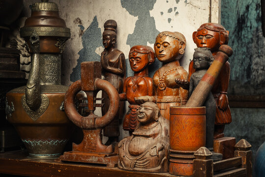 Wooden figures of Gods on the Chor Bazaar in Mumabi, India