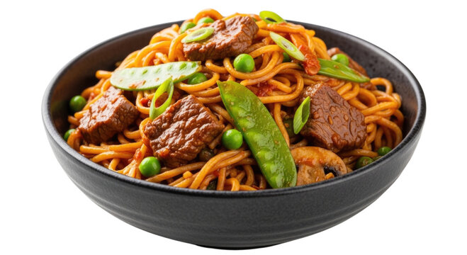 Delicious chicken chow mein served on a plate with chopsticks isolated PNG with Transparent Background