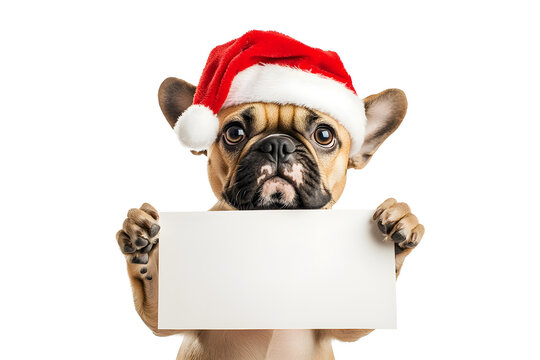Christmas template - old wooden sign with Santa hat and spruce twig hanging on a rusty chain isolated on a transparent background.