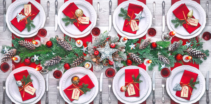 festive christmas dinner setting. Seasonal holiday dining background | Generative AI