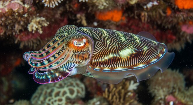 Vibrant Cuttlefish Displays Colorful Patterns Underwater