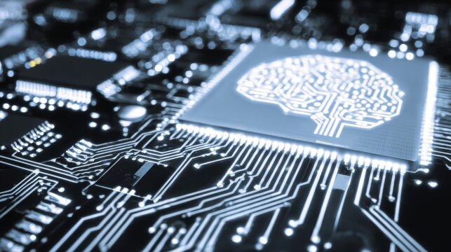 Gleaming metal and thought: the future of brain augmentation. News style. Iridescent insights: ai brain chip icon woven with detailed circuitry. Honest scene. Raw beauty.