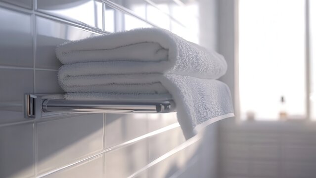 Luxurious White Towels Hanging in a Modern Bathroom