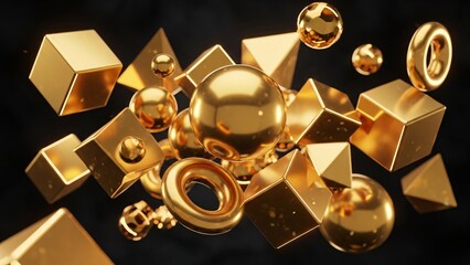 Shopping cart surrounded by geometric shapes against a dark background conceptual illustration