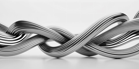 Polished chrome ribbons sweeping across deep blue background with horizontal gaps
