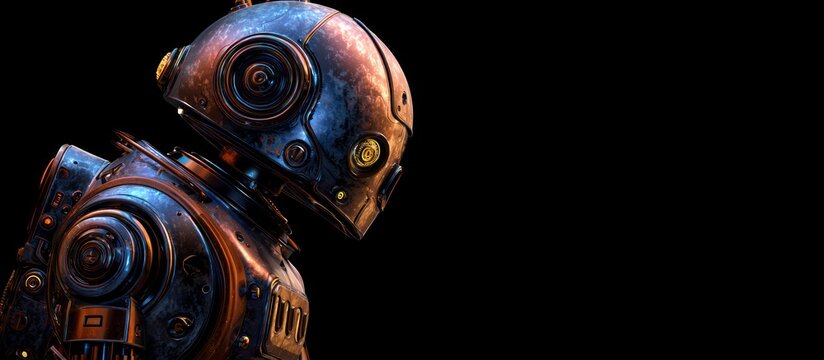 High-tech humanoid robot with illuminated circuits, futuristic AI prototype in dark background