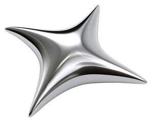 Gleaming faceted chrome key with spiked geometric bow leaning on white studio background