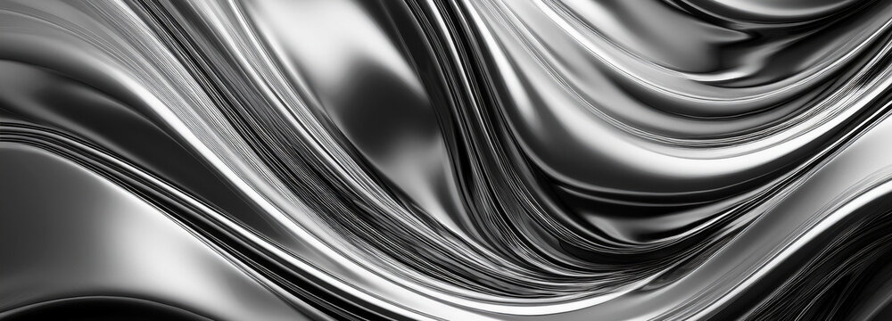 Metal chrome liquid background abstract texture silver gradient 3d pattern design fabric. Liquid metal wave chrome.