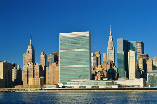 New York City view. Turtle Bay in Midtown Manhattan, Queensboro Bridge over East River and New Jersey