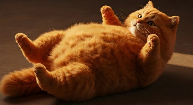 Feeding food to hungry chubby lovely cat or pet and stand up to waiting, generative ai