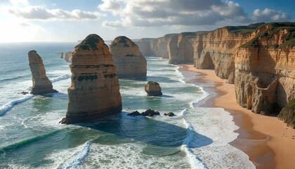 dramatic ocean wave crashing against rocks, stormy seas with powerful waves, rugged coastline with turbulent surf, dramatic seascape with crashing waves, cinematic landscape of churning waves and jagg